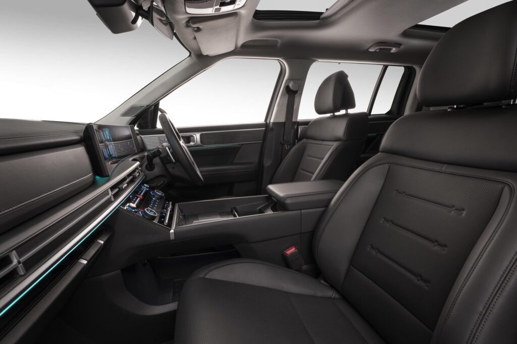 Hyundai has made sure the Santa Fe is exceptionally well-equipped, with nearly every conceivable feature coming standard. This includes dual sunroofs, heated seats, a Bose speaker system, and a comprehensive suite of advanced driver assistance systems.
